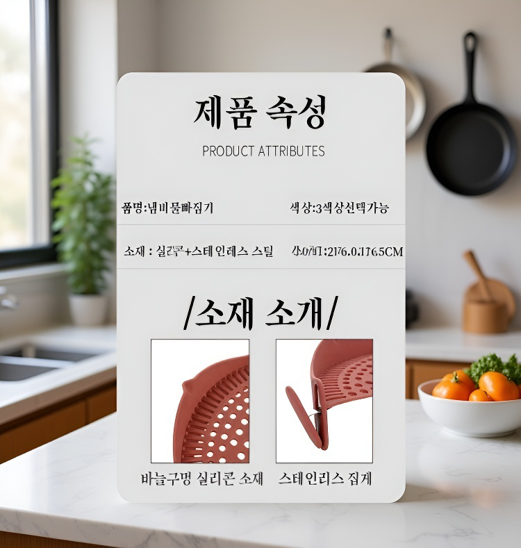 냄비에 장착 가능한 실리콘 필터